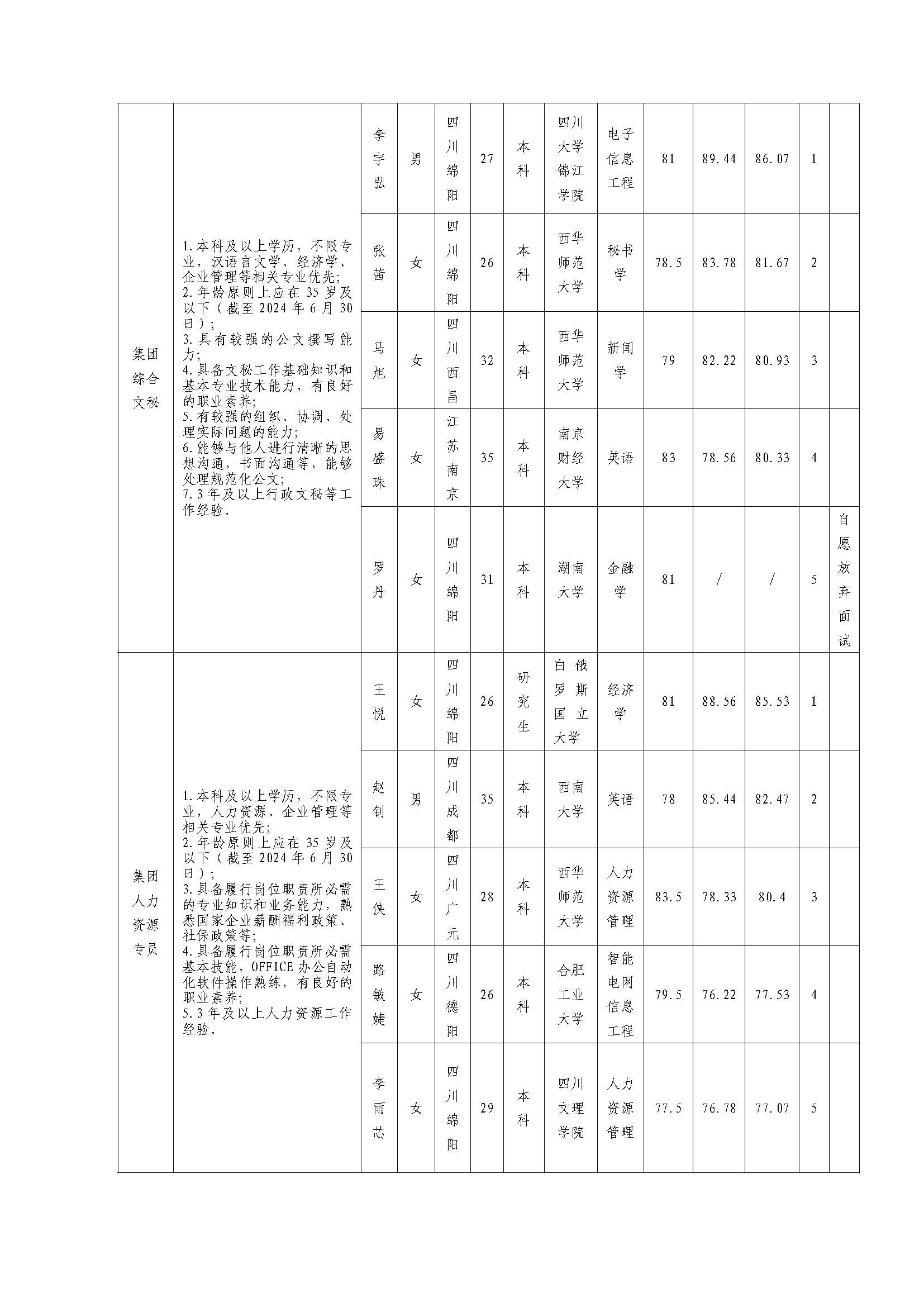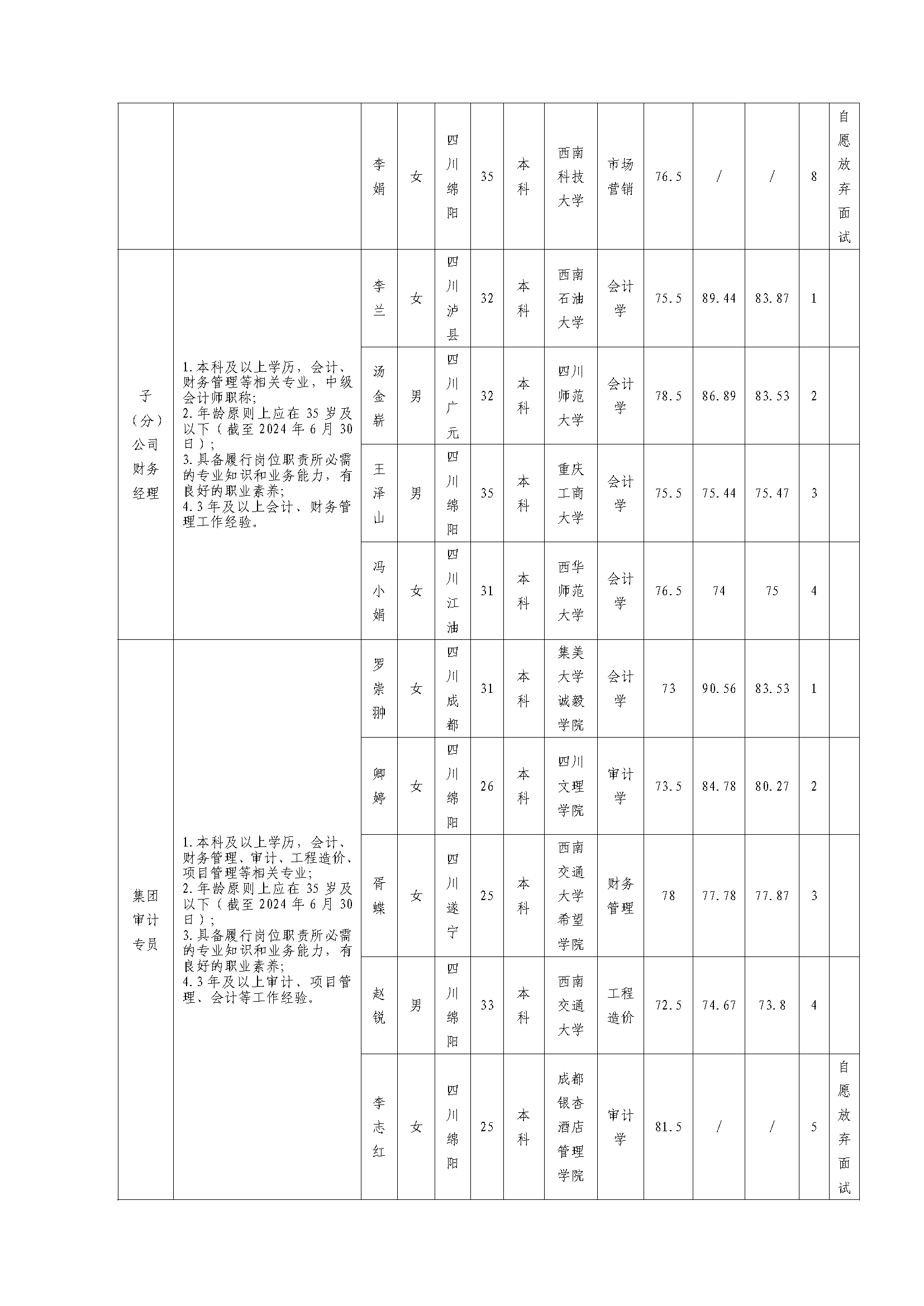 bw必威西汉姆联官方网站关于招聘集团财务主管等岗位(2024年第二批)测试 成绩的公示