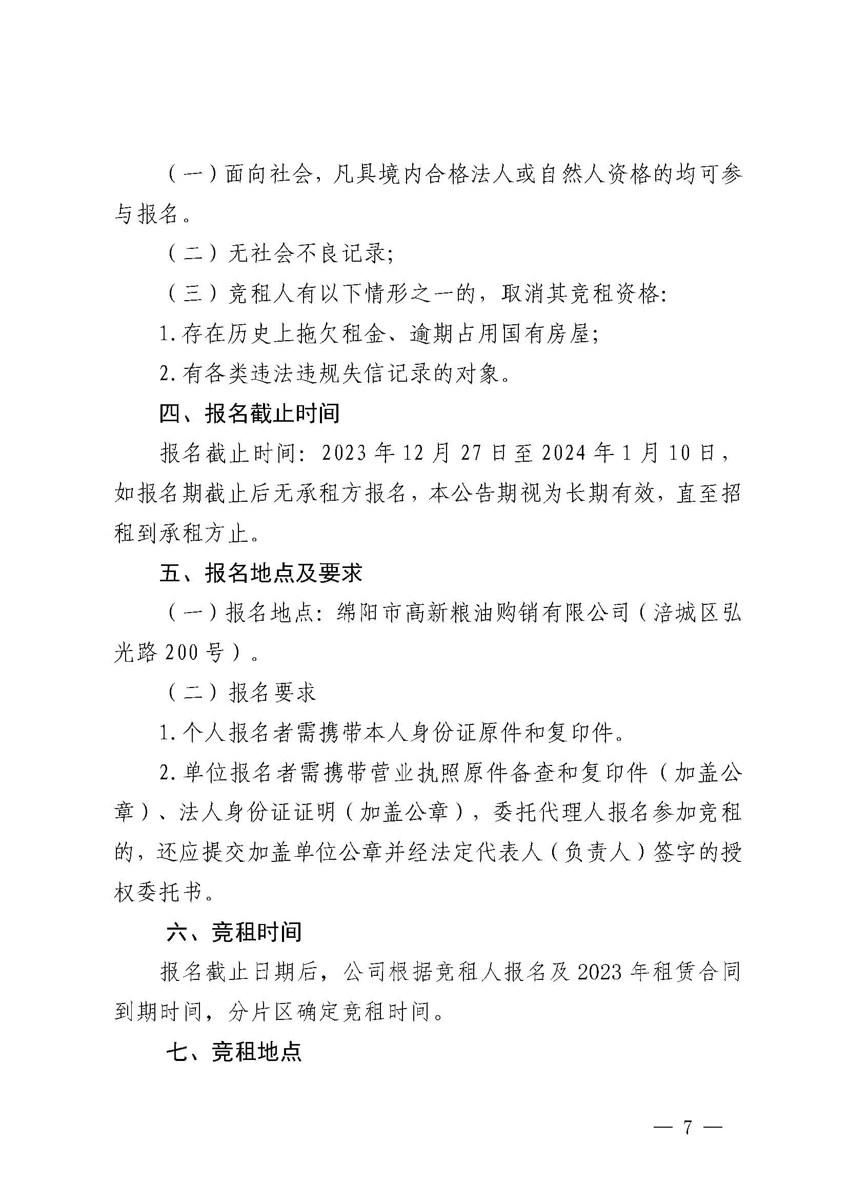 绵阳市高新粮油购销有限公司资产招租公告
