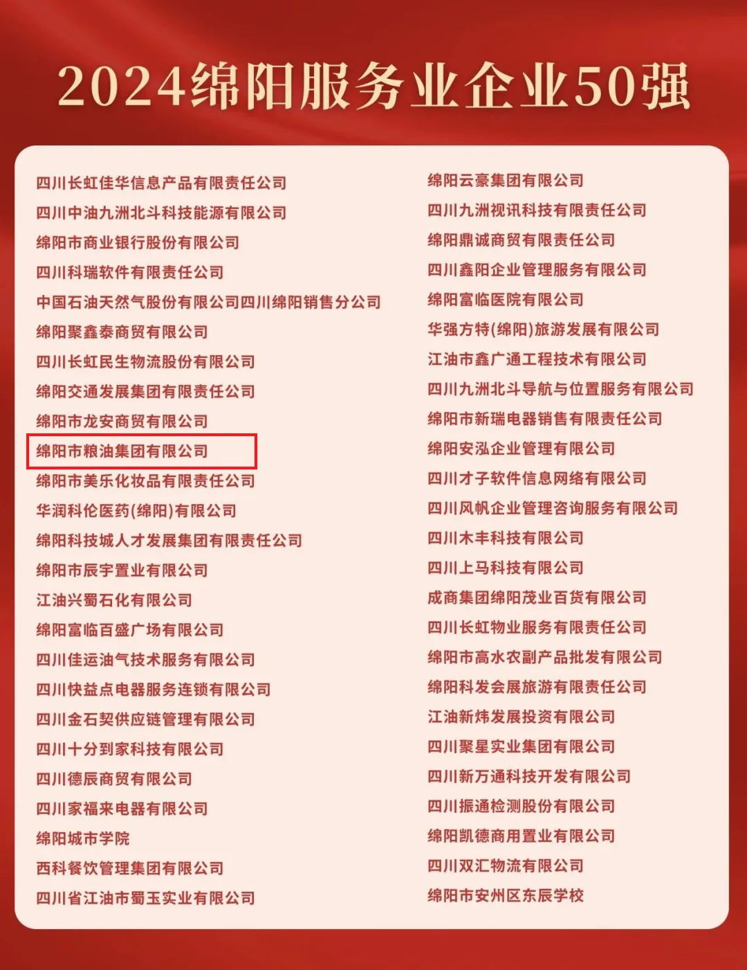 12月26日,中国(绵阳)科技城“企业之家”揭牌仪式暨“2024绵阳企业50强”榜单发布活动在绵举行。bw必威西汉姆联官方网站位列全市企业50强第30位,服务业企业50强第10位。