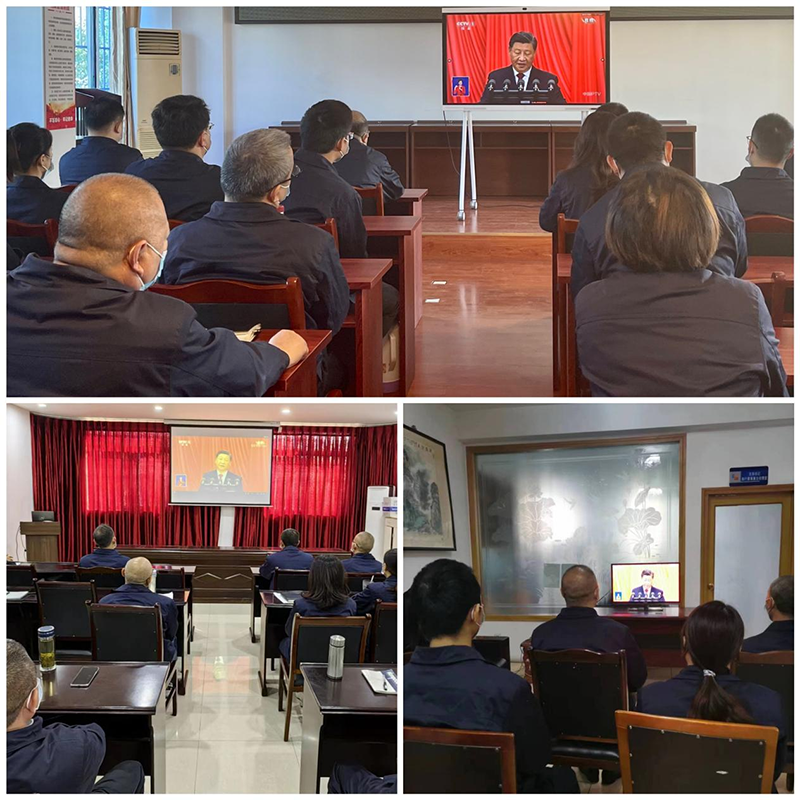 集团分五个会场组织收听收看,部分因公在外的同志,也纷纷利用电脑、手机第一时间共同观看时代盛会。